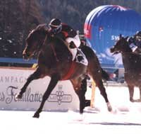 Am. Annina Widmer mit Desert Track - Stall Sigma im GP Maurice Lacroix LR am 23. Februar 2003 in St. Moritz